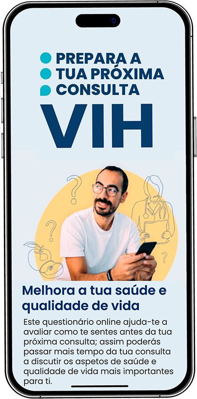A primeira APP com um únicoquestionário validado* para ajudaras pessoas com VIH a preparara sua consulta.